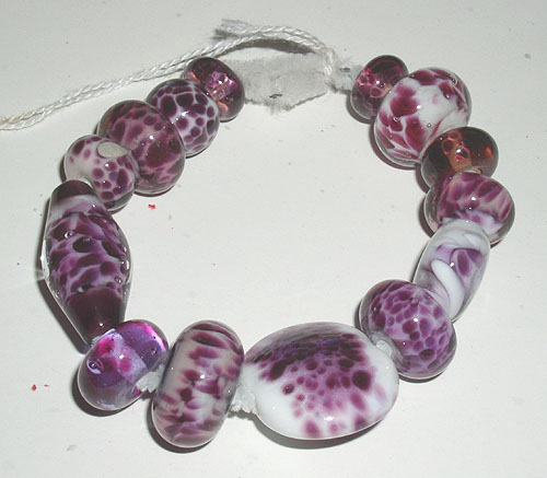 ![]() CALPYSO 3 BIG OVAL FOCAL OR PENDANT Calypso 3 had a beautiful but subtle dichro internal shimmer,that is a lot like an opal. Black, red and yellow party ribbons encased in clear - with 23 k gold leaf highlights. Bead is 1.25 inches long ! (32 cm) |